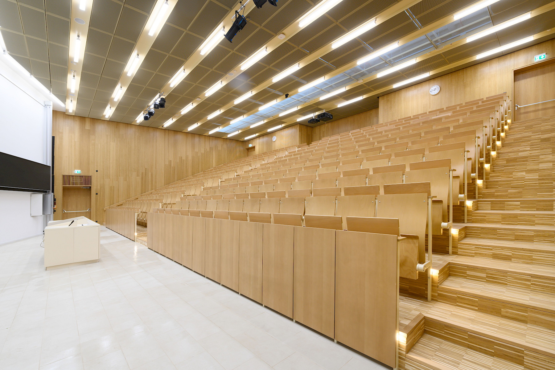 Die Modernisierungsarbeiten am Gebäude Chemie 4.3 an der Universität Saarbrücken umfassten die Renovierung der beiden Hörsäle (zwei kleinere und eines größeren Hörsaals). Darüber hinaus wurden das Foyer sowie die notwendigen Versorgungseinrichtungen im unteren Geschoss, wie Technikräume und Sanitäranlagen, auf den neuesten Stand gebracht. Eine auffällige gestalterische Komponente war die Verwendung von Cortenstahl, der in Form einer Streckmetallverkleidung die beiden Hörsäle einheitlich umfasst, während im Inneren der Hörsäle Holz zur Gestaltung der Bekleidung und Möbel verwendet wurde. Innerhalb dieser Verkleidung wurden speziell für die Studierenden neue Spinde eingerichtet, und zusätzlich wurde eine Informationstafel installiert, die zur besseren Orientierung und Kommunikation beiträgt.