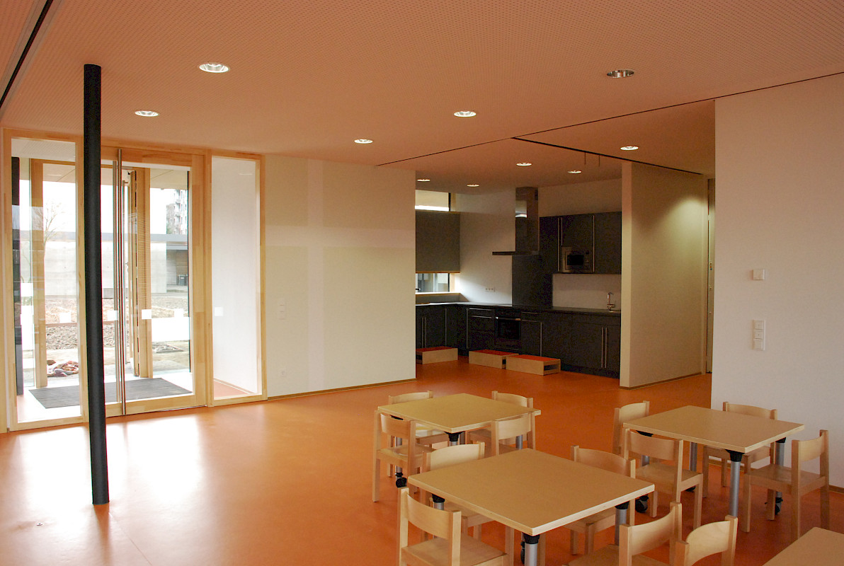 Das Arbeiten mit gemischten Altersgruppen sollte möglich und Abgrenzung wie Gemeinsamkeit zugleich Programm sein. Es sollte ein Gebäude entstehen, das kindgerecht, aber keineswegs, wie allzu oft, kindlich in Erscheinung tritt.