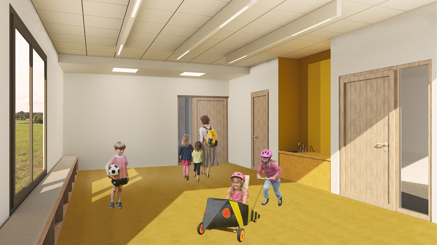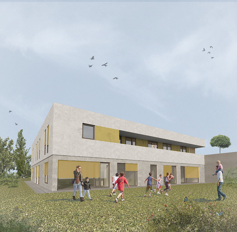 Das Gebäudekonzept sieht eine zweigeschossige Kindertagesstätte mit insgesamt ca. 1.000 m² Bruttogeschossfläche vor.