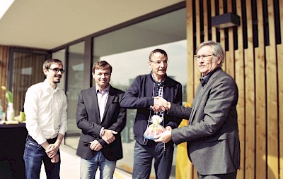 Nach 13 monatiger Bauzeit konnte das Bruder-Konrad-Haus in Saarbrücken dem Bauherrn fristgerecht und unter Einhaltung des Kostenbudgets übergeben werden. von links: