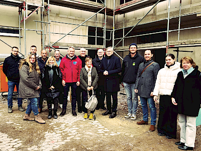 Im Rahmen einer Besichtigung präsentierte Willi Latz Studenten von Prof. Matthias Michel, Prof. Ulrike Fischer und Prof. Klaus Köhler der HTW des Saarlandes das Projekt Kindertagesstätte Völklingen.