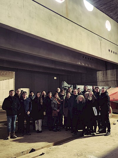Durch die Besichtigung der Baustelle KiTa Gisorstraße in Riegelsberg hatten Studenten des dritten Semesters der Schule für Architektur Saar (HTW), die Gelegenheit, ein realisiertes Praxisbeispiel zu ihrem parallel laufenden Holzbau-Studienprojekt in Begleitung von Prof. Matthias Michel, Prof.