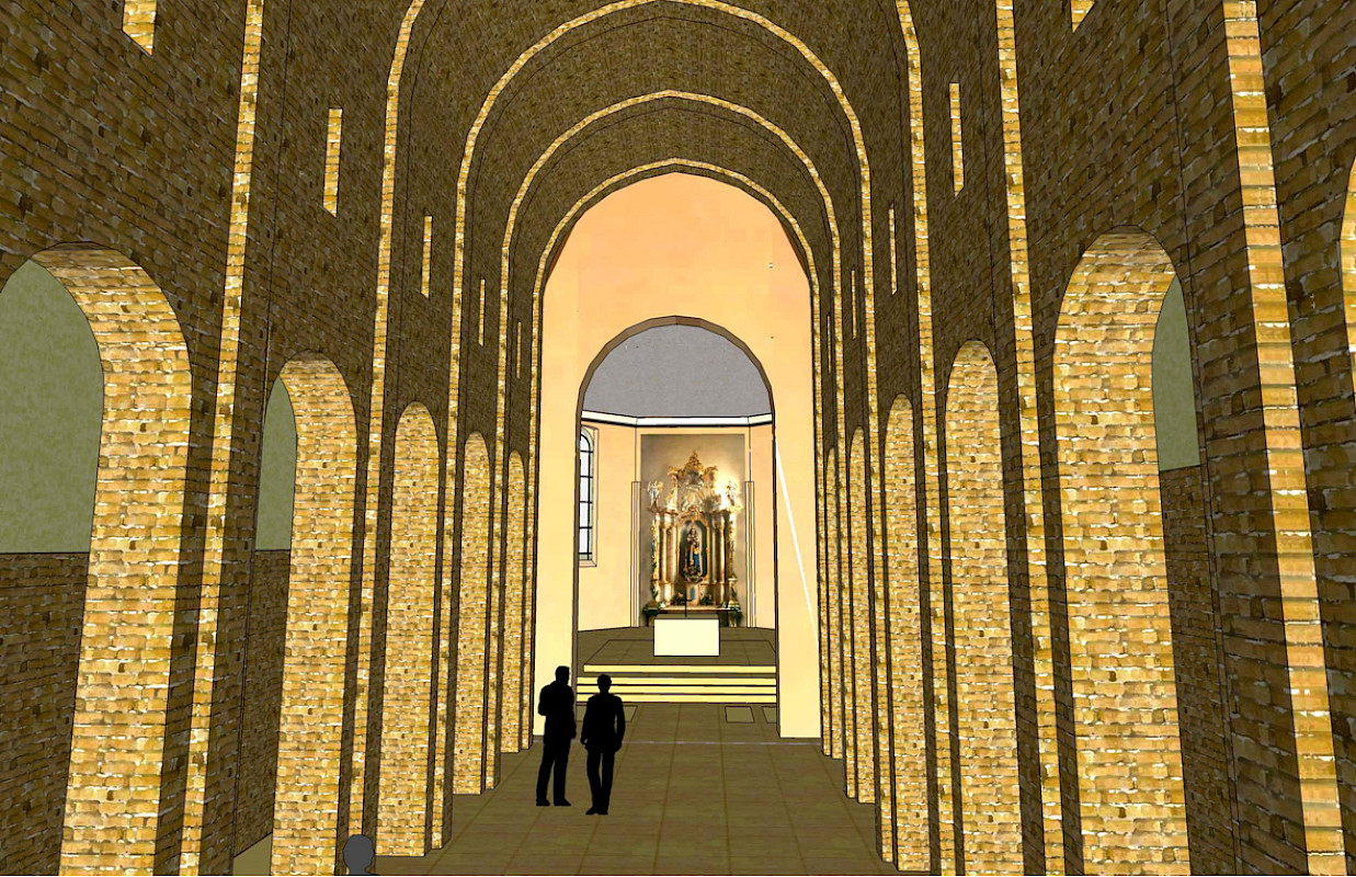 Die Konzeption der neuen Kirche orientiert sich an der Struktur mittelalterlicher Abteikirchen, insbesondere an Cluny. So wird der Entwurf der neuen Kirche unter anderem im Inneren durch ein sogenanntes “architektonisches Zitat” bestimmt, einem eingestellten Torso, der neben der Tonnenwölbung auch Proportionen und Maßverhältnisse der Klosterkirche Cluny III aufnimmt. Das neue Gebäude wird im Sinne einer Inkorporation (Haus in Haus-Lösung) in der Ruine der ehemaligen Prioratskirche postiert, ohne eine materielle Verbindung zum Altbestand.
